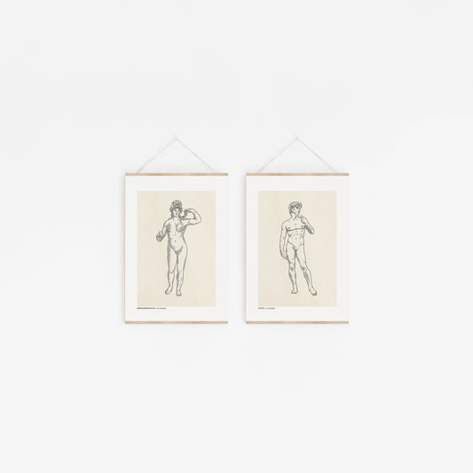 Greek Gods Art Print Set | Hermaphroditus and David Reimagined