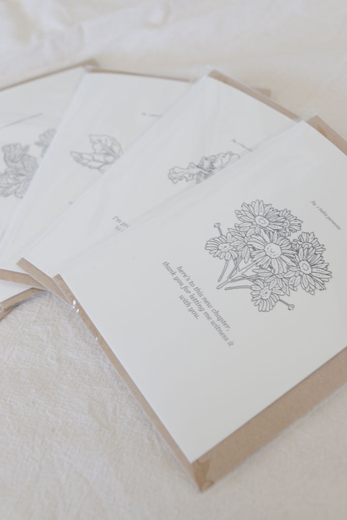Celebrate life’s big shifts with this beautifully illustrated greeting card featuring Bellis perennis (daisies), symbolising new beginnings and hope. The quote “here’s to this new chapter, thank you for letting me witness it with you” makes it a thoughtful gift for a loved one coming out, choosing a new name, or embracing a personal milestone.
